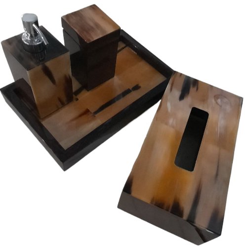 Благодаря своему изысканному и элегантному стилю комплект для ванной комнаты ARCA украшает и придает индивидуальность ванной комнате. Элементы из глянцевого черного лакированного дерева и хромированной латуни украшены вставками из темного рога зебу (для изготовления продукции восстанавливаются рога зебу, разводимые в дикой природе с соблюдением этологии животного), которые создают очаровательные и хорошо сбалансированные цветовые контрасты. Набор ARCA, состоящий из диспенсера, салфетницы и коробки для косметических принадлежностей, расположенных на подносе, удовлетворяет любые функциональные и эстетические потребности.