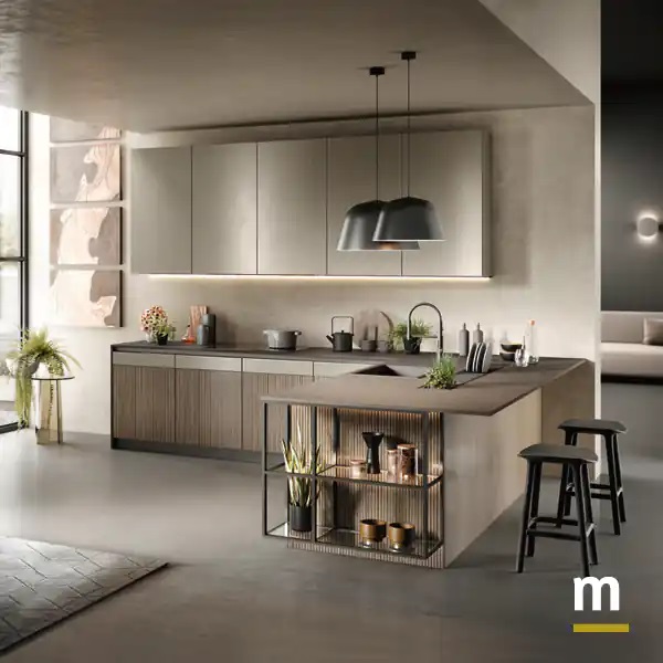 Островная кухня модели Natural. Естественная и элегантная, с изысканным дизайном, эта кухня воплощает в себе гармонию и стиль. Дверцы с двойной отделкой символизируют уникальность и богатство, придавая интерьеру неповторимый шарм.